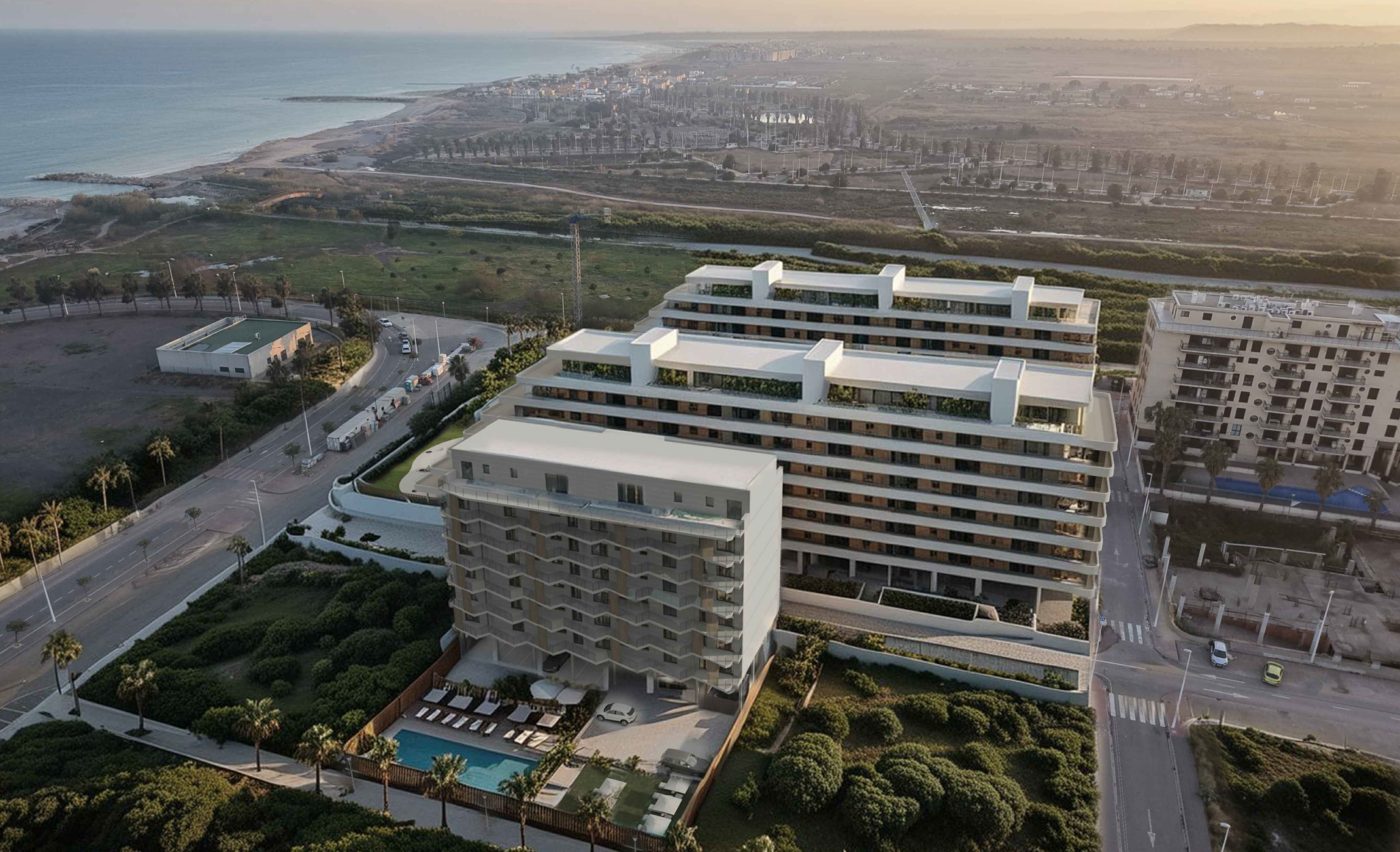 Inwestycja Mirador Beach w Moncofa to kameralny, nowoczesny kompleks apartamentów zaprojektowany z myślą o komforcie życia i wysokim standardzie wykończenia. Do wyboru są mieszkania o powierzchni od około 80 do 150 m², z 2 lub 3 sypialniami – idealne zarówno do zamieszkania, jak i jako inwestycja.