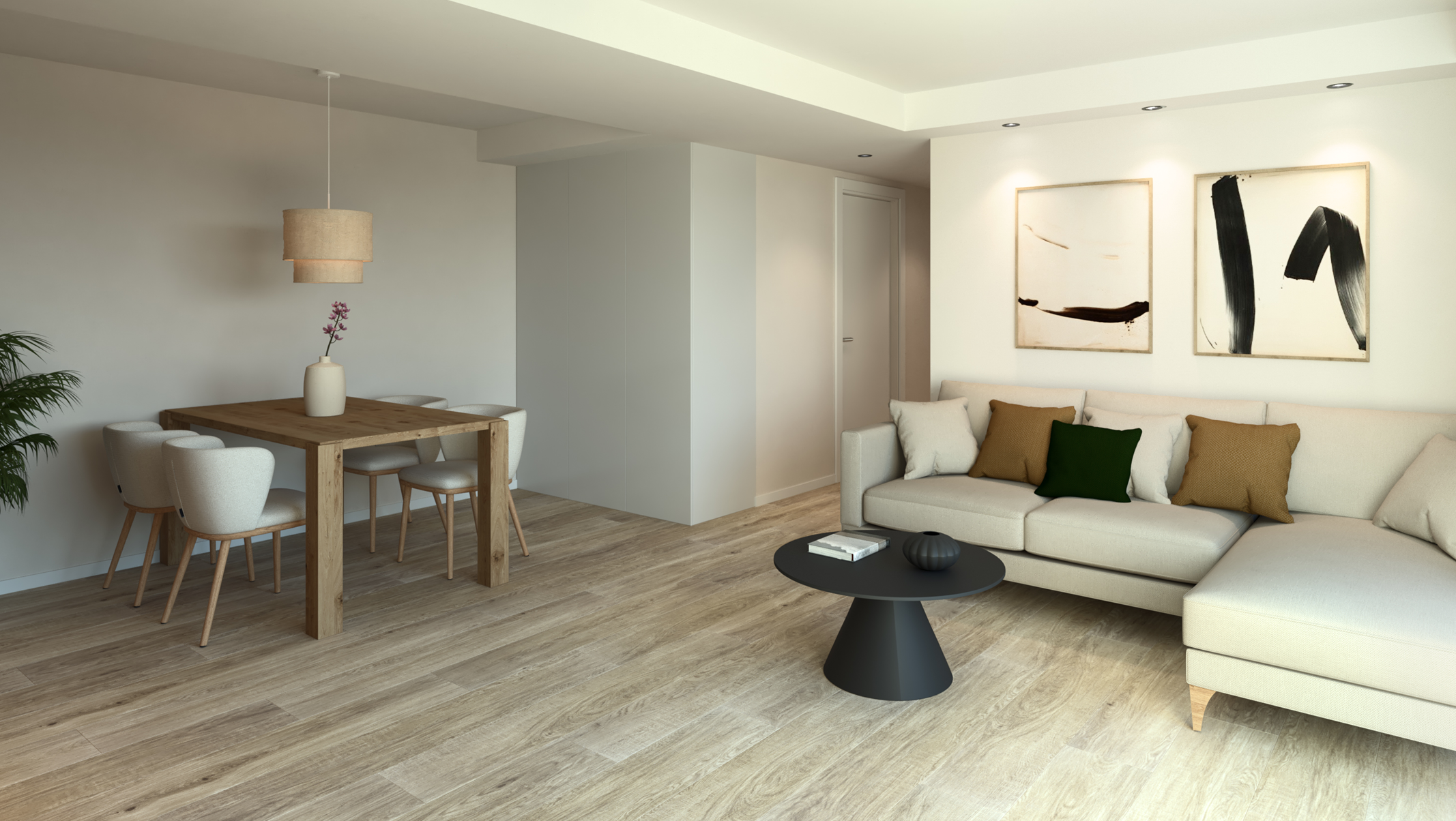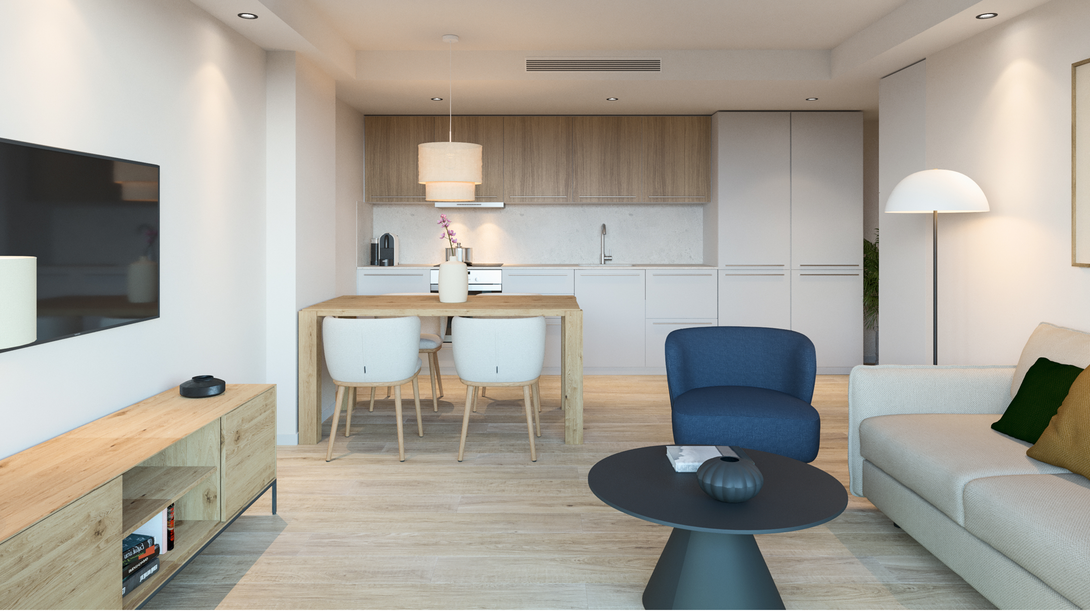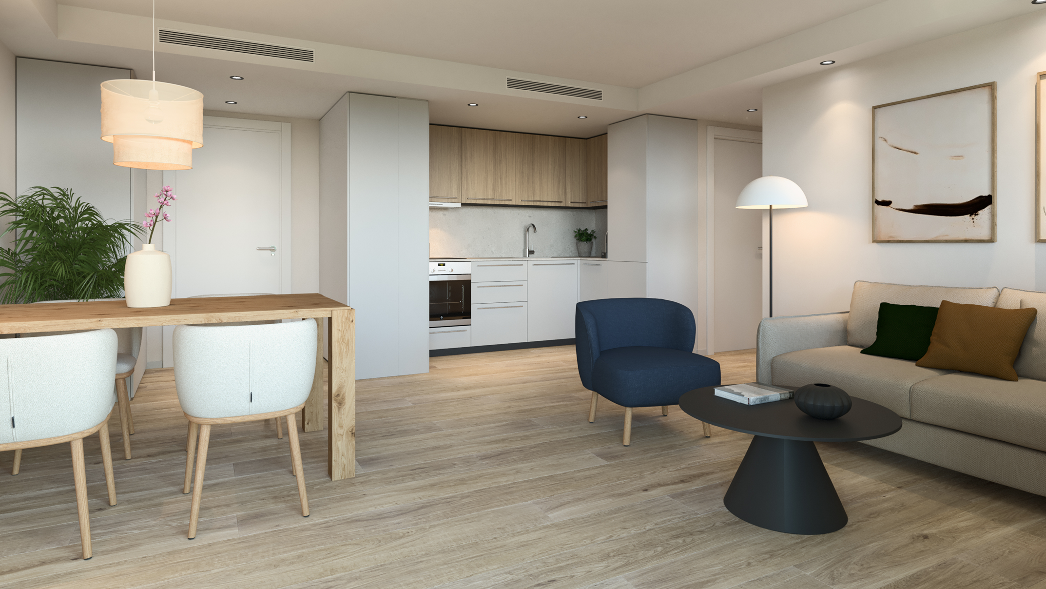Apartamenty wykończone są w nowoczesnym, spójnym stylu, z dbałością o detale i jakość materiałów: